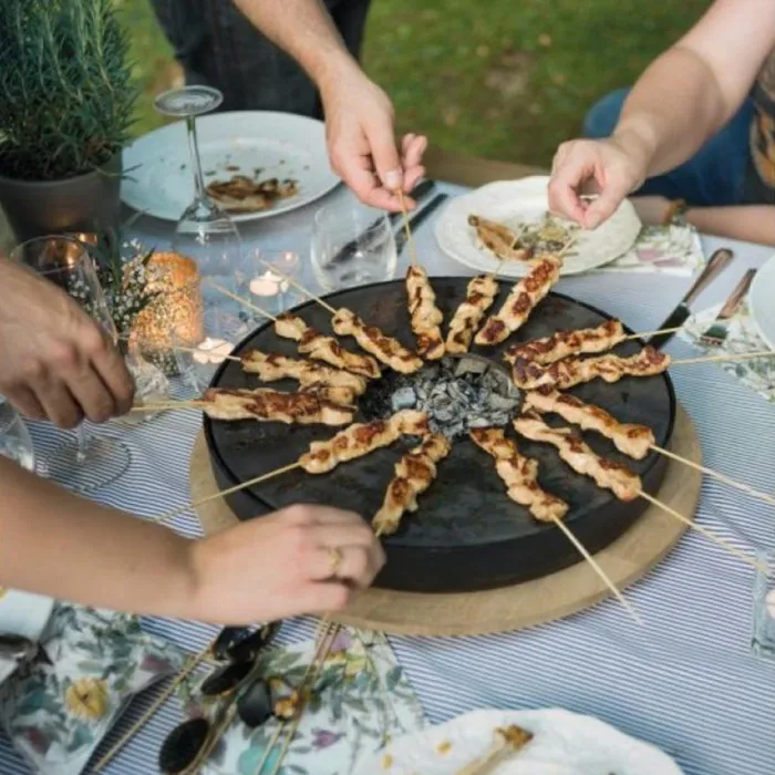 - Terbuat dari baja penahan panas berbentuk lingkaran Ø 40 cm yang pada bagian tengahnya terdapat lubang tungku untuk pembakaran dengan menggunakan arang.